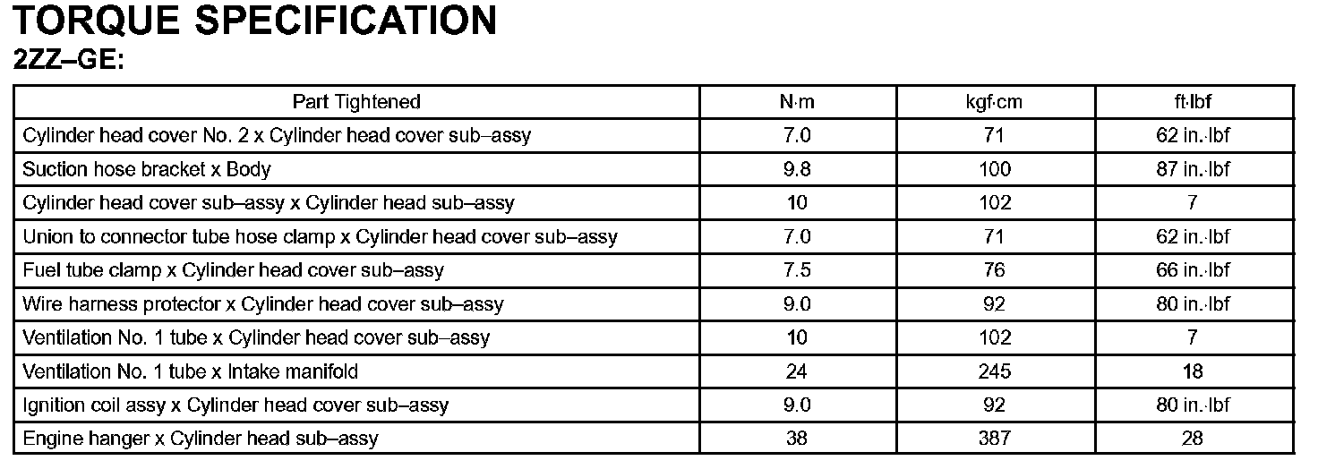 Engine Mechanical - Torque Specification Part 3:
