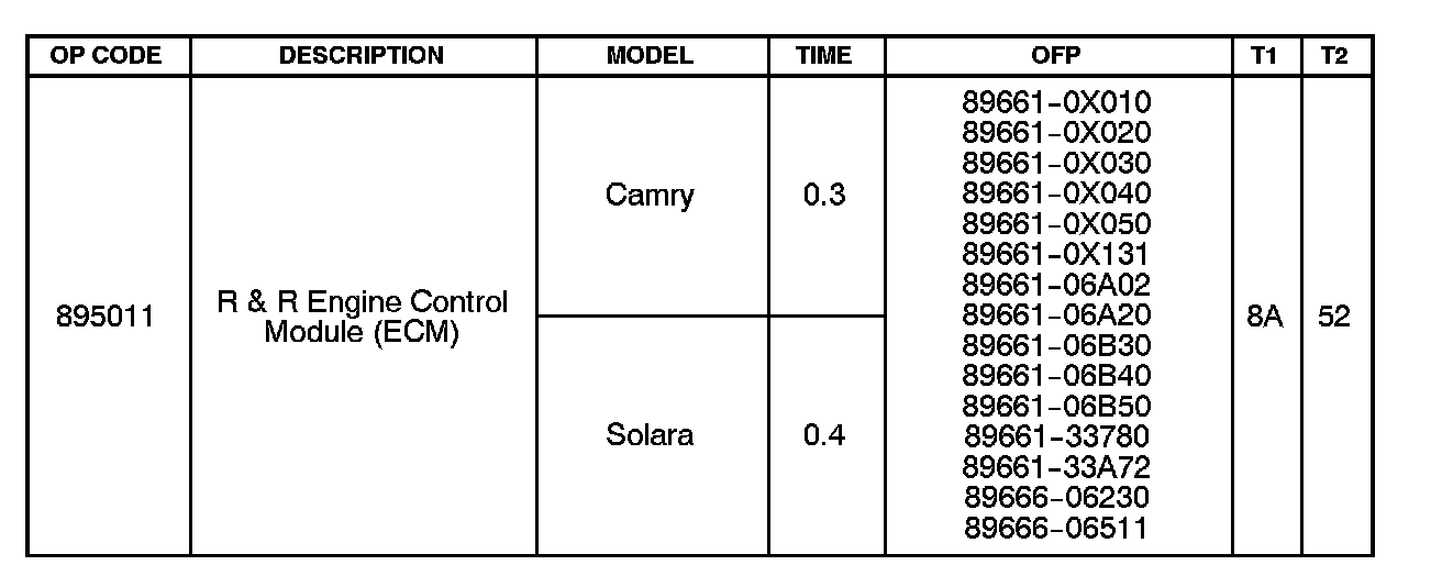 Replace ECM (PCM). Follow repair manual ECM replacement instructions. Refer to the Technical Information System (TIS), 2003-2004 model year Camry or Solara Repair Manual: Engine Control System: ECM (2AZ-FE): Replacement.