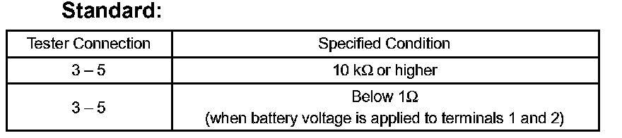 If the result is not as specified, replace the relay.
