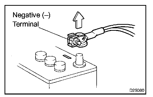 1. Before performing electronic work, disconnect the battery negative (-) terminal cable to prevent component and wire damage caused by accidental short circuits.