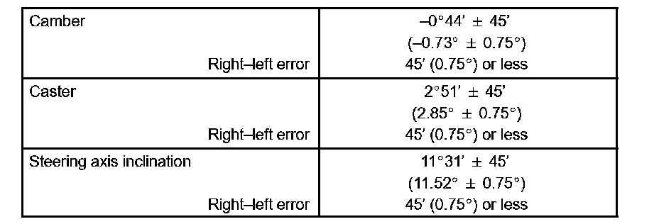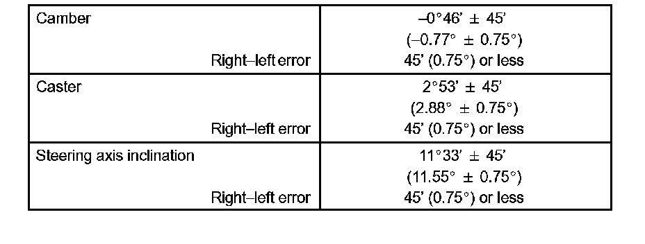 The body and suspension may be damaged if the camber is not correctly adjusted according to the above table.