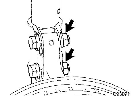 b. Remove the 2 nuts on the lower side of the shock absorber.