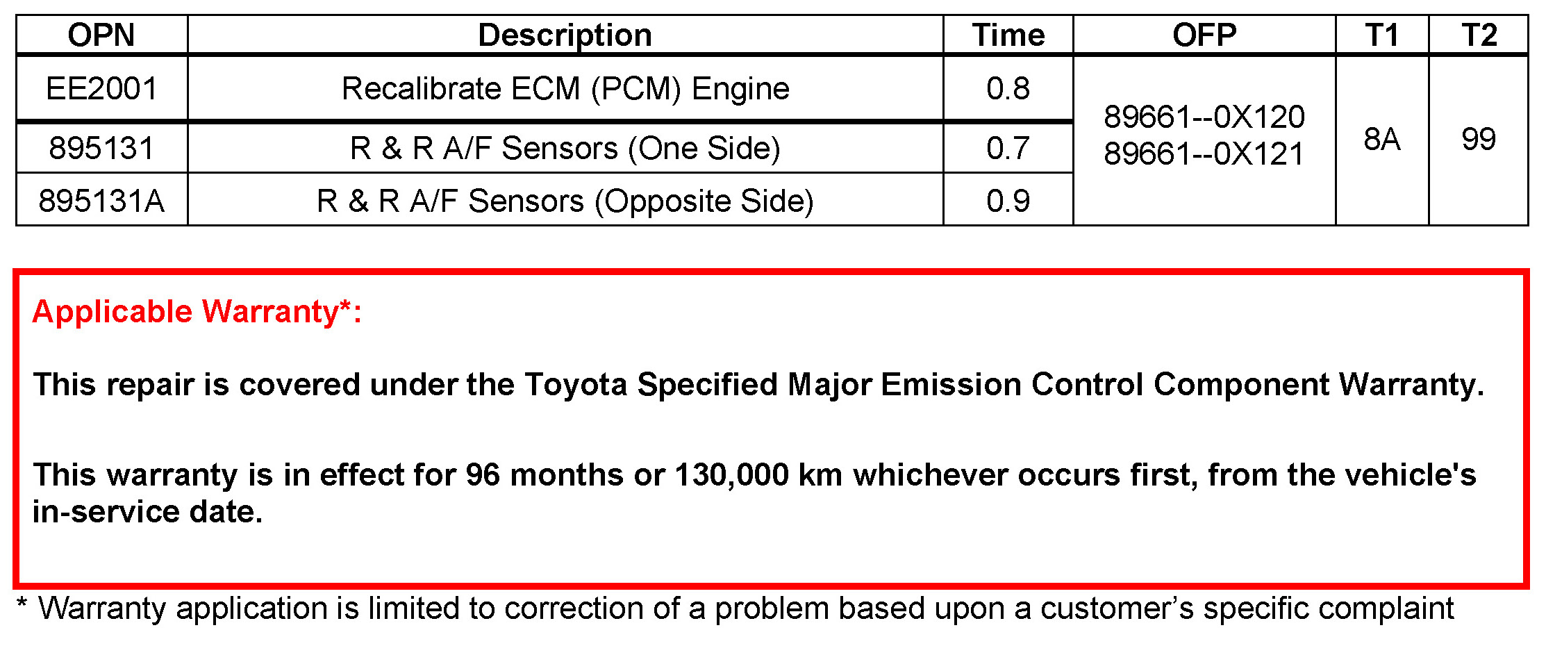 - 2004 model year Solara vehicles, which have been flash reprogrammed using the procedures in this TSB, will contain upgraded 2005 model year OBD II logic. Refer to the 2005 model year Solara Repair Manual information on ETAS when checking Powertrain Diagnostic Trouble Codes (DTCs) on 2004 model year vehicles that have been reprogrammed.