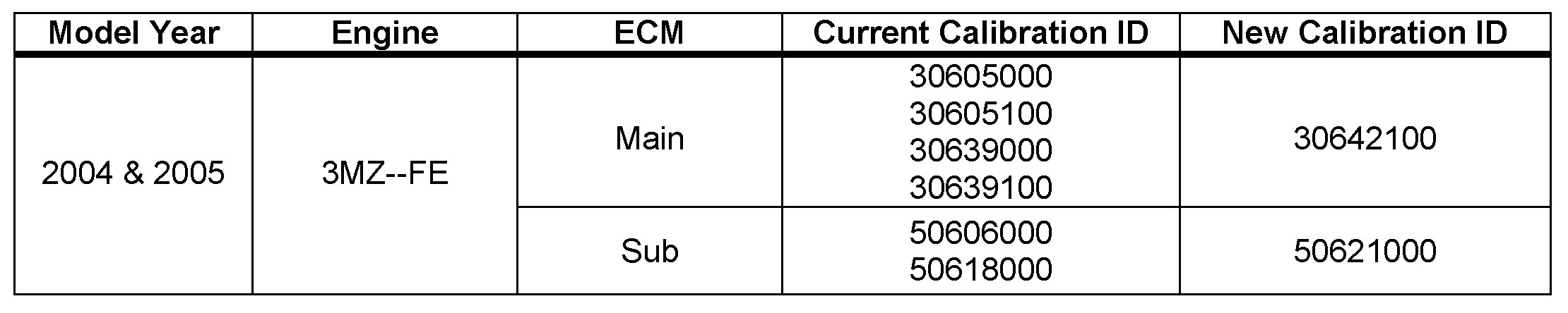- Although the calibration description in the Calibration Update Wizard and on the Diagnostic Tester reads "04 Solara," these calibrations apply to 2004 and 2005 model year Solara vehicles produced before the Production Change Effective VINs shown of this TSB.