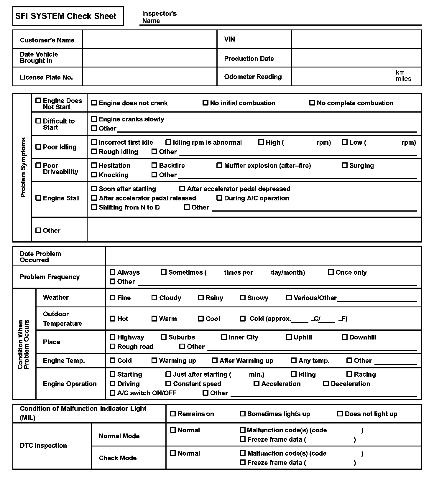 SFI SYSTEM Check Sheet:
