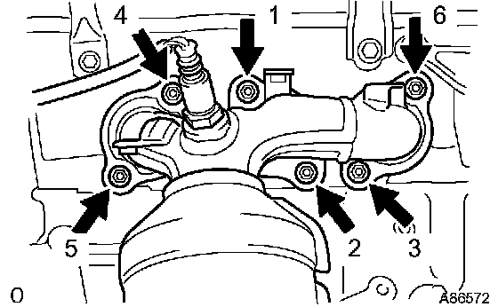 Install a new gasket and the converser with the 7 nuts. Uniformly, tighten the 7 nuts in the sequence shown in the illustration.