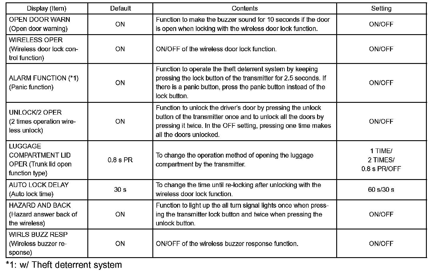 - The function only switches the entry unlock of the smart key system. It does not switch the unlocking of the wireless door lock remote control.