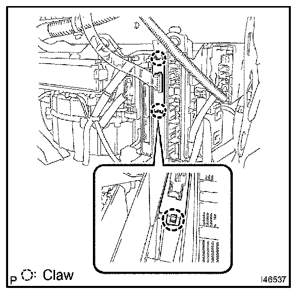 b. Disengage the 2 claw and remove the ECU aggregation cover No.1.
