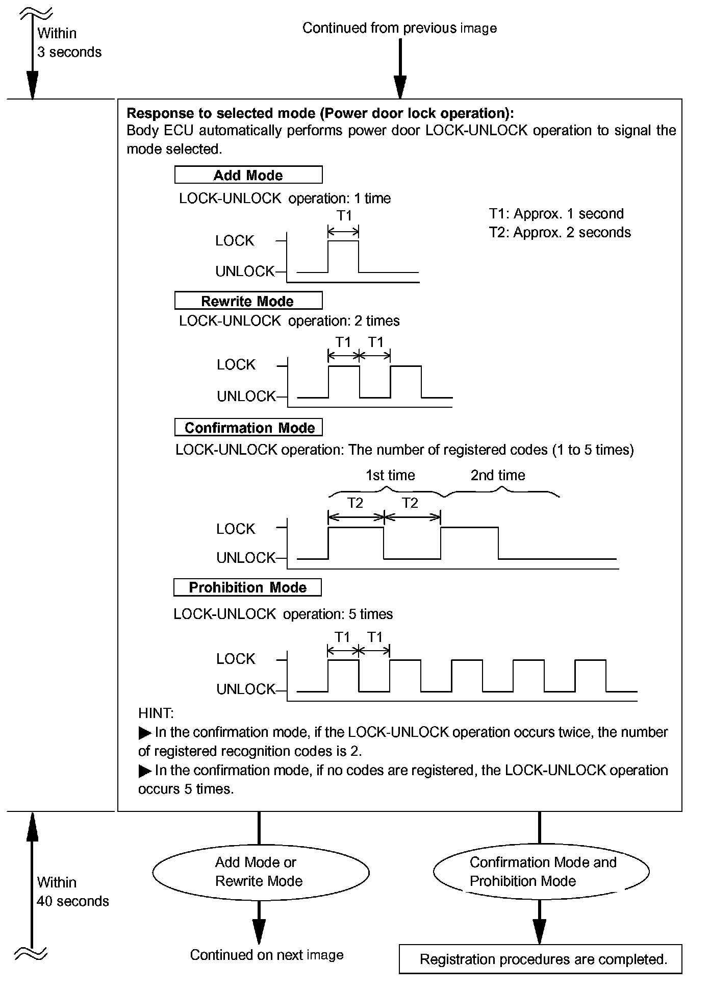 - Confirmation mode is used to confirm the number of recognition codes already registered before another recognition code is registered.