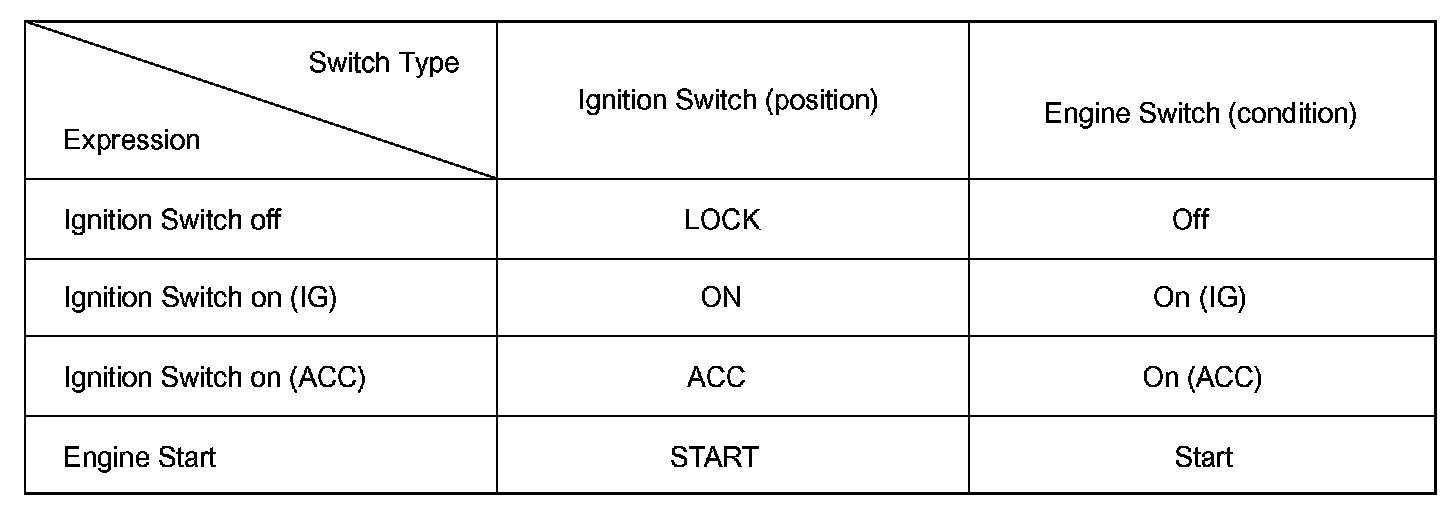 The type of ignition switch used on this model differs according to the specifications of the vehicle.