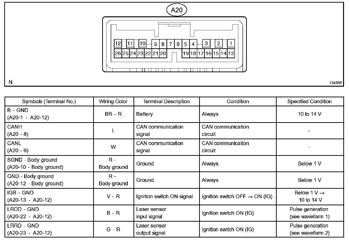 Terminals Of Control Module/Pinouts - Laser Sensor: