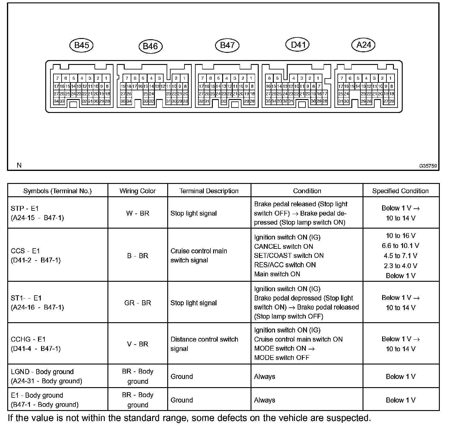 Terminals Of Control Module/Pinouts - Distance Control ECU:
