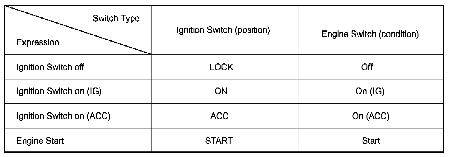 The type of ignition switch used on this model differs according to the specifications of the vehicle.