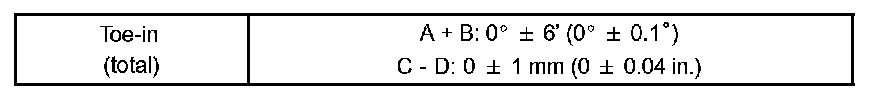 The body and suspension may be damaged if the camber is not correctly adjusted according to the above table.