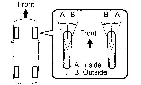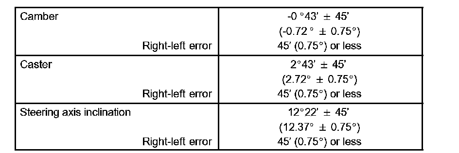 Check the suspension parts for damaged and/or worn out parts if the caster and steering axis inclination are not within the specified range after the camber has been correctly adjusted.