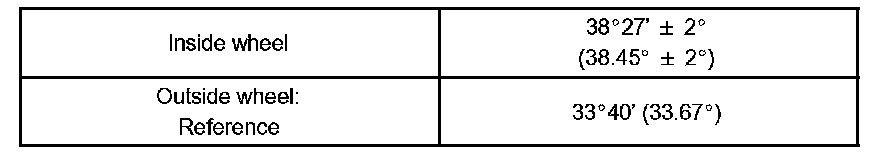 If the right and left inside wheel angles differ from the specified range, check and adjust the right and left rack end lengths.