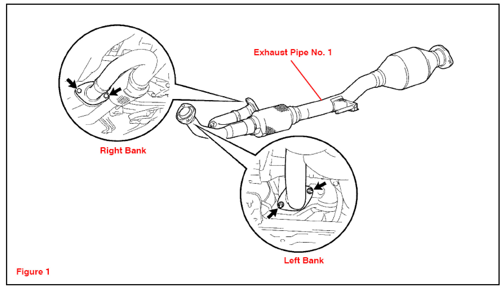 1. Disconnect the bank 1 and bank 2 front pipe assembly from the exhaust manifolds.