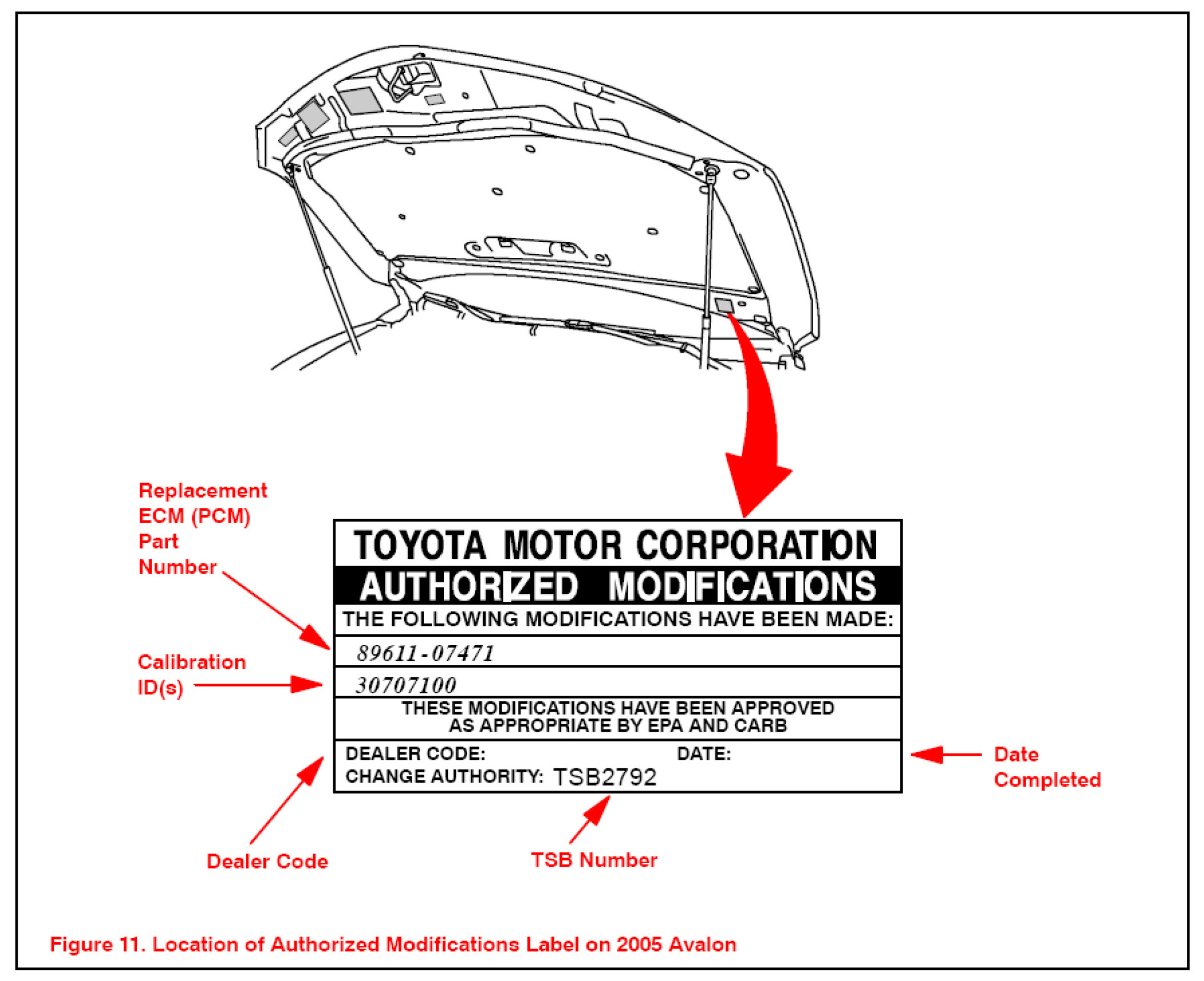 Before proceeding, verify the ECM (PCM) calibration has NOT been updated by checking for the Authorized Modifications Label (shown in Figure 11 of the Repair Procedure).