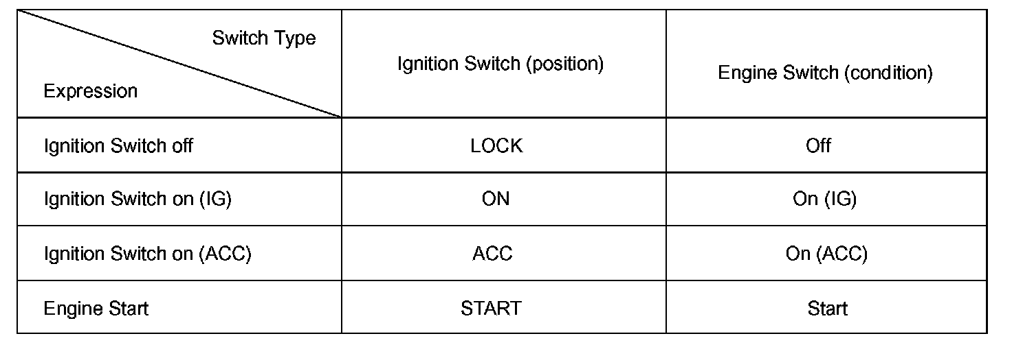 The type of ignition switch used on this model differs according to the specifications of the vehicle.
