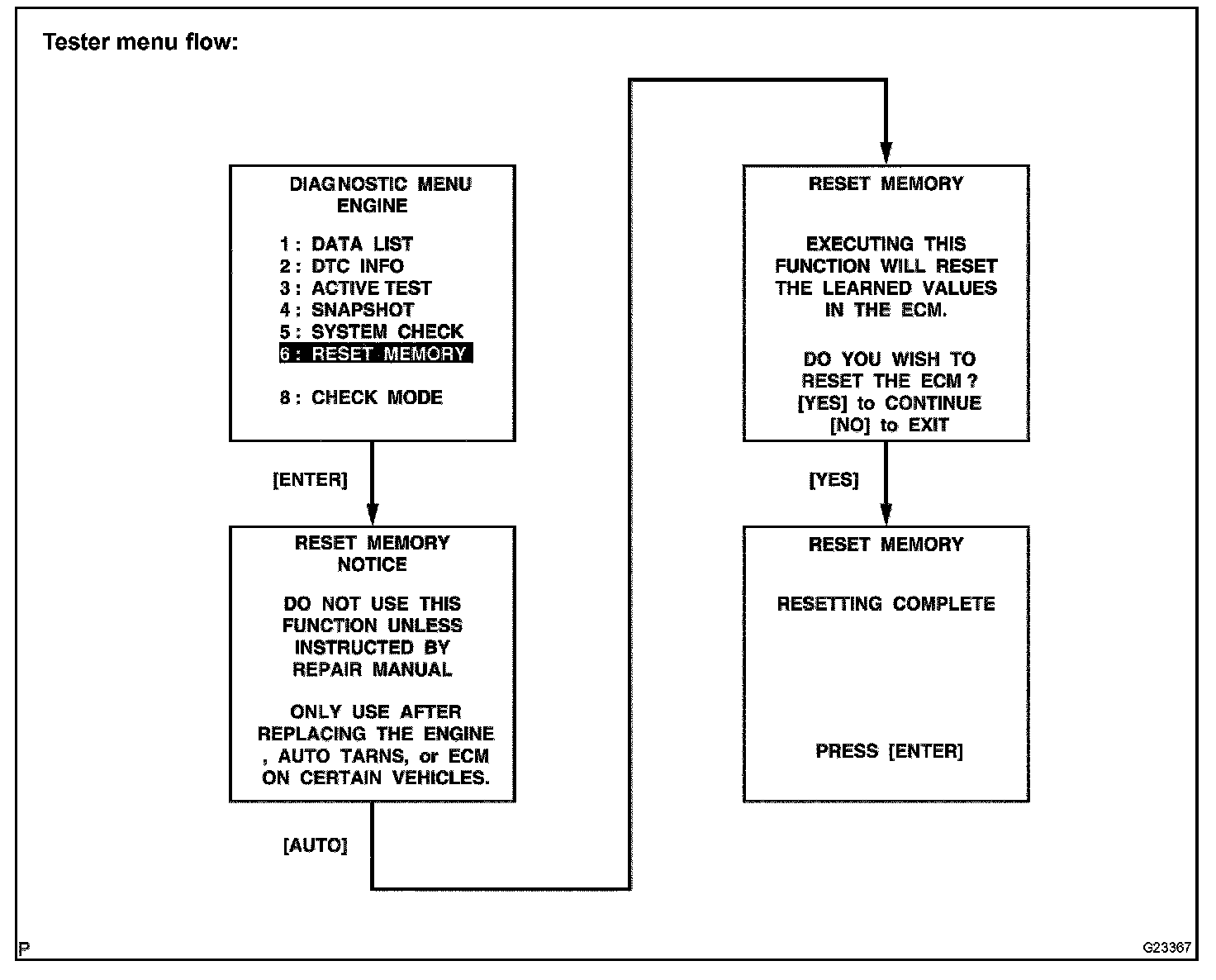 CAUTION: After performing the RESET MEMORY, be sure to perform the ROAD TEST described earlier.