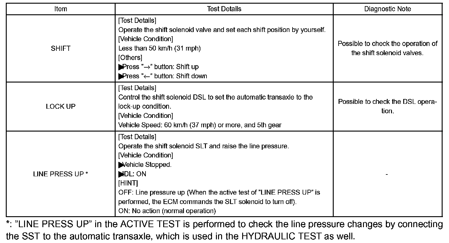 HINT: The pressure values in ACTIVE TEST and HYDRAULIC TEST are different from each other.
