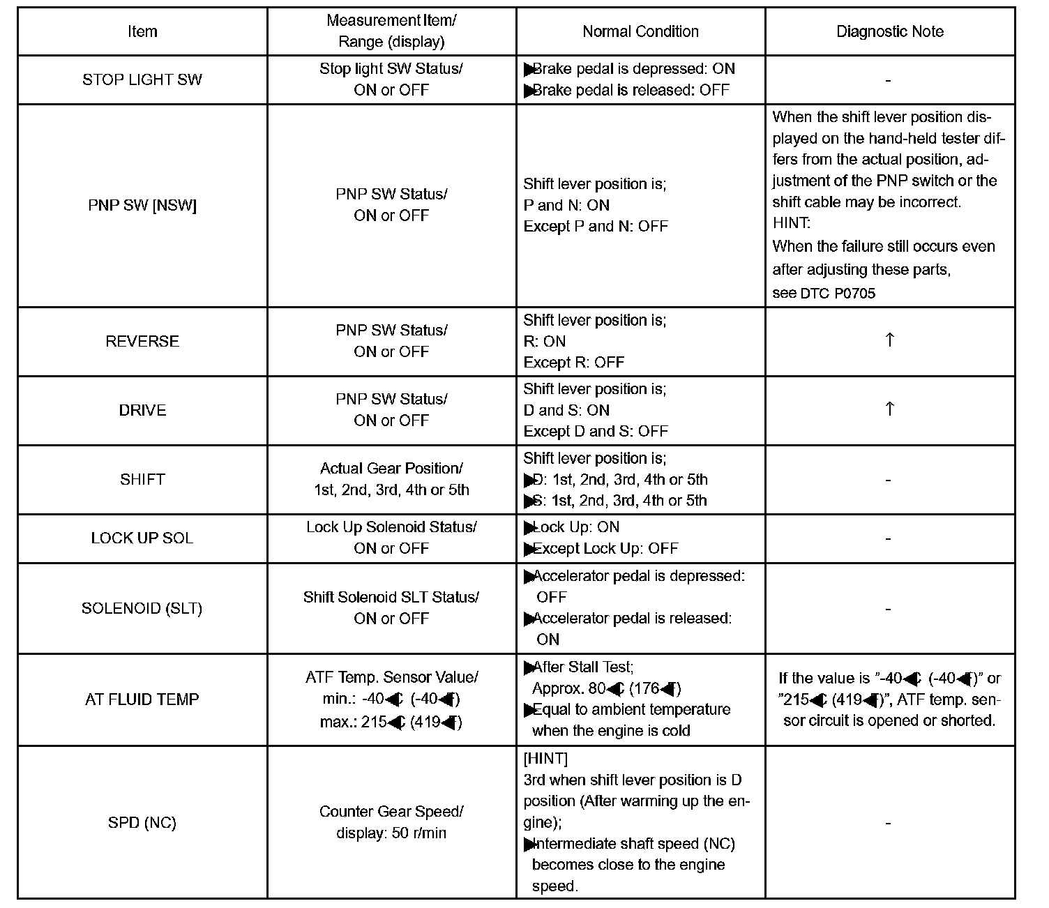 DATA LISTHINT: According to the DATA LIST displayed by the hand-held tester, you can read the value of the switch, sensor, actuator and so on without parts removal. Reading the DATA LIST as the first step of troubleshooting is one method to shorten labor time.