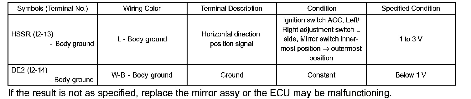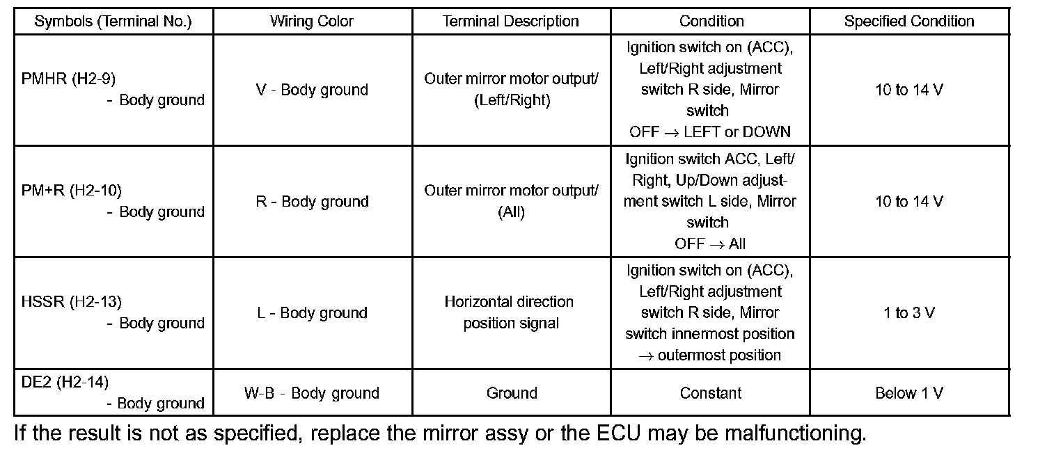 Terminals Of Control Module/Pinouts - Memory Mirror ECU (RH) Part 2: