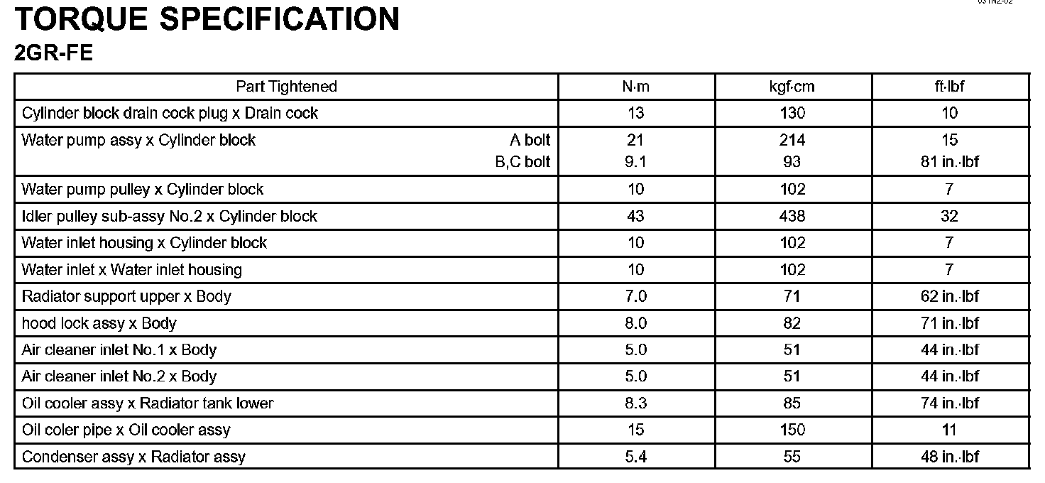 Cooling - Torque Specification: