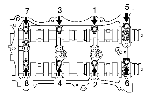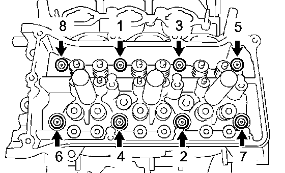 Temporarily tighten the 8 bolts in the order shown in the illustration.