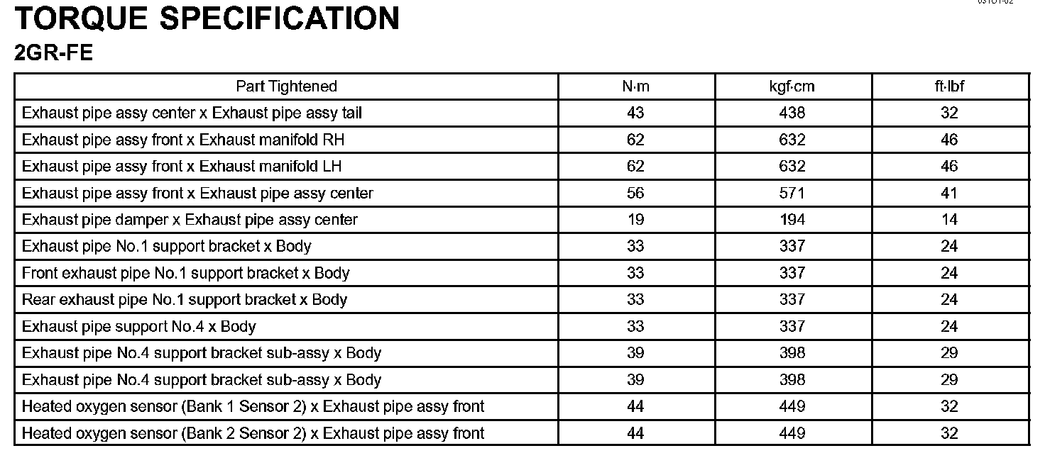 Exhaust - Torque Specification: