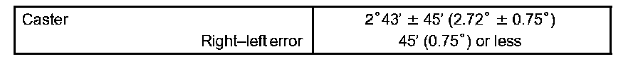 The body and suspension may be damaged if the camber is not correctly adjusted according to the above table.