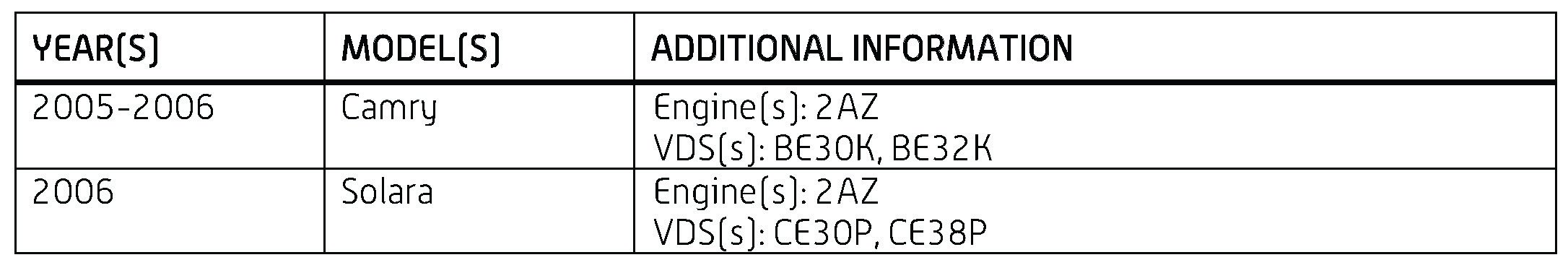 Some 2005 - 2006 model year Camry and 2006 model year Solara vehicles may exhibit a MIL "ON" condition with Diagnostic Trouble Code (DTC) P0500 - Vehicle Speed Sensor "A".