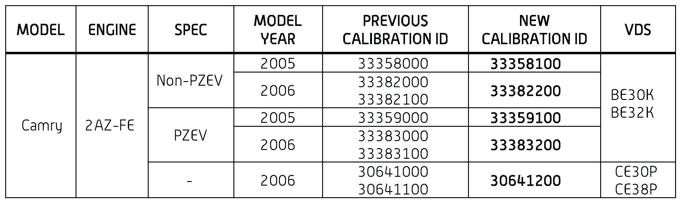 - Calibration ID(s) [Refer to the Calibration Identification Chart for the NEW CALIBRATION ID]