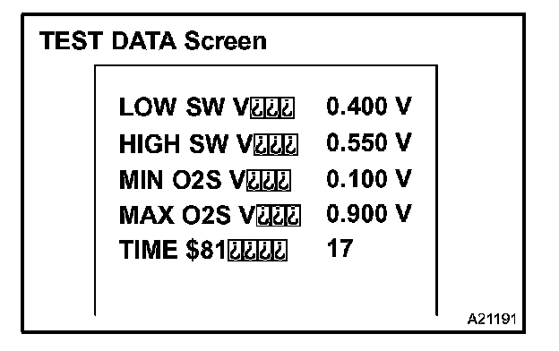If the TEST DATA value appearing on the scan-tool is out of the standard value, the O2S is malfunctioning. If it is within the standard value, the O2S is functioning normally. However, if the value is on the borderline of the standard value, the O2S may malfunction very soon.