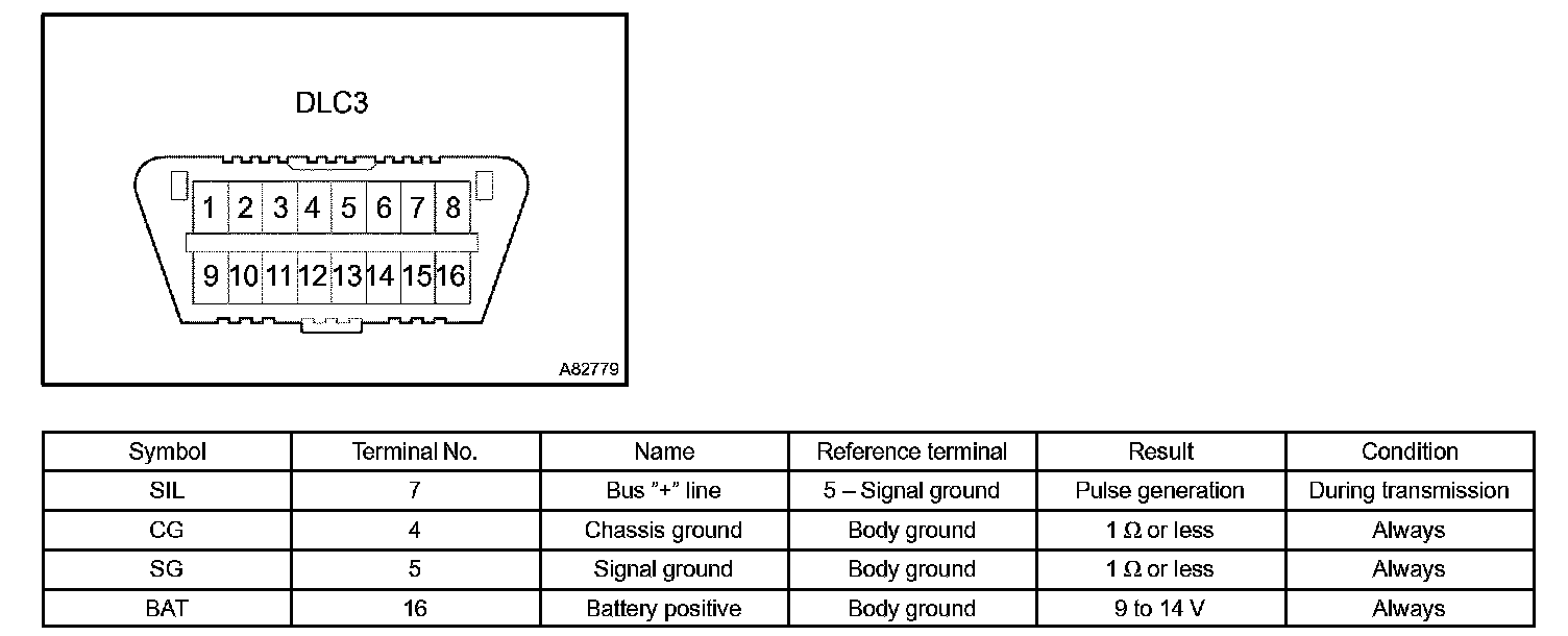 CHECK DLC3The vehicle's ECM uses the ISO 91412 for communication protocol. The terminal arrangement of the DLC3 complies with SAE J1962 and matches the ISO 91412 format.