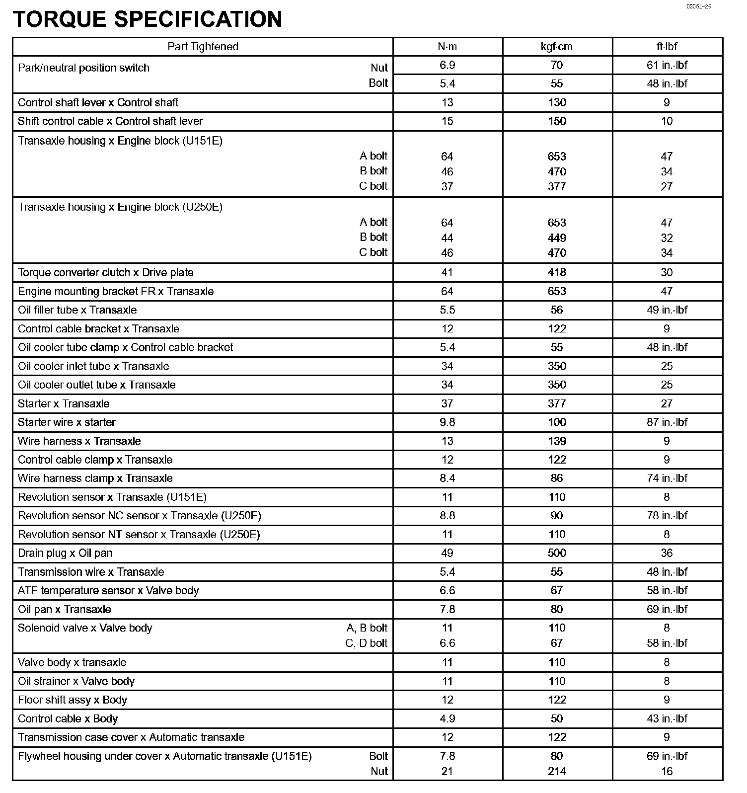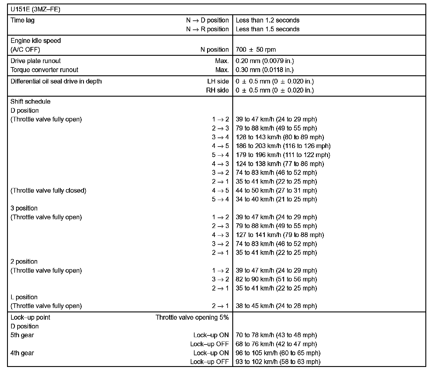 Automatic Transmission/Transaxle - Service Data Part 2:
