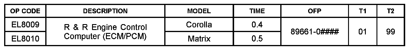 ^ model year Matrix Repair Manual Engine/Hybrid System - Engine Control - "ECM (IZZ-FE/2ZZ-GE): Replacement"