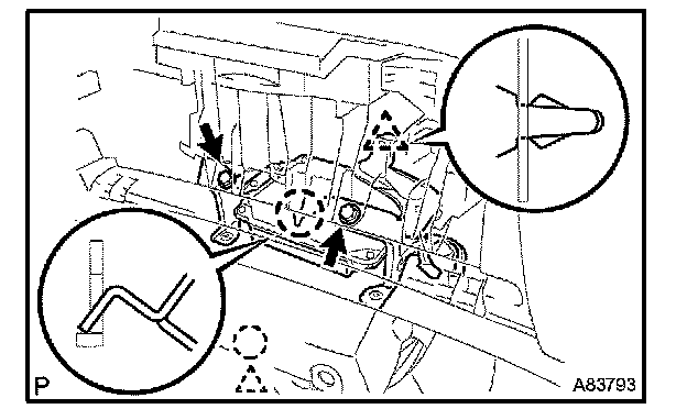 b. Deform the upper part of the glove compartment door assy to release the stoppers.