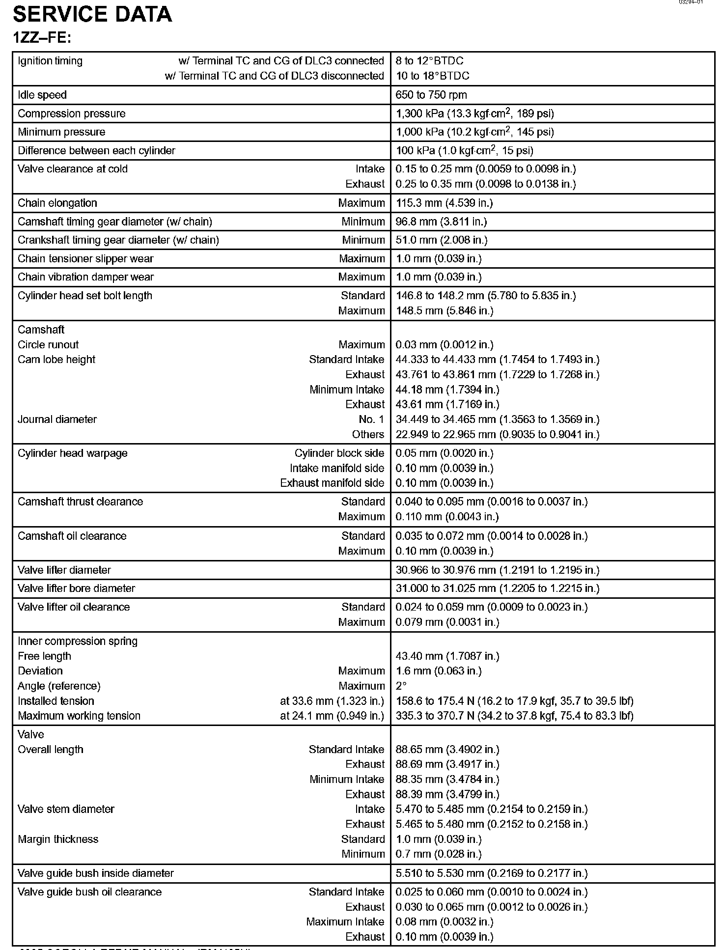 Engine Mechanical - Service Data Part 3: