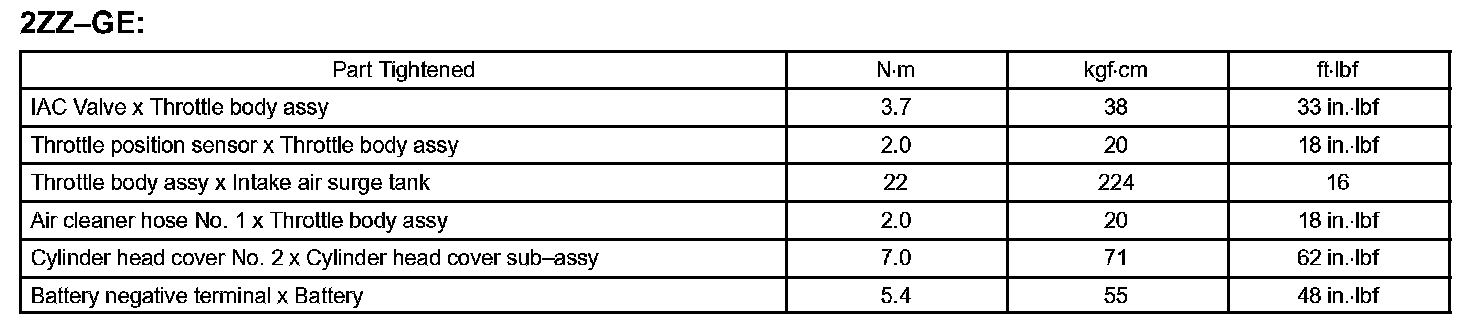 Engine Control System - Torque Specification: