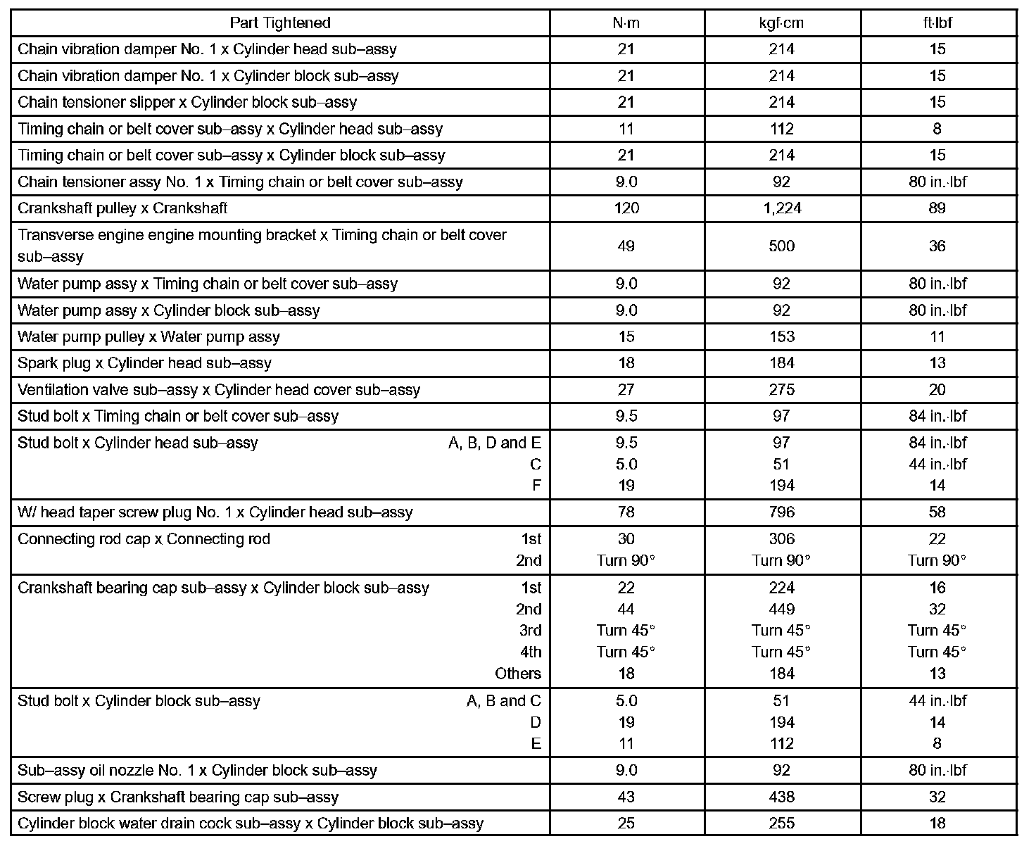 Engine Mechanical - Torque Specification Part 1: