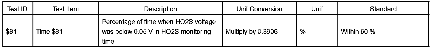O2S Test Result Table: