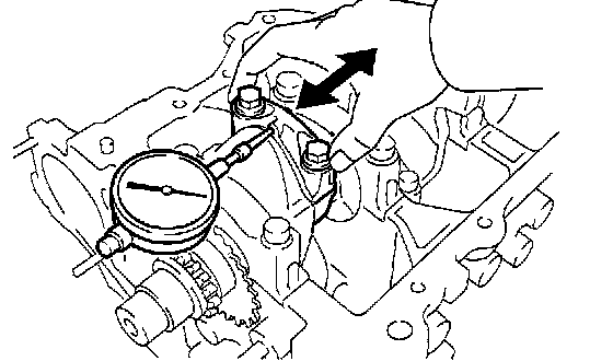 Using a dial indicator, measure the thrust clearance while moving the connecting rod back and forth.