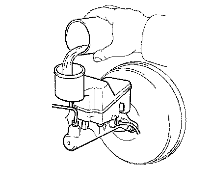 ^ Make sure that the brake fluid in the master cylinder reservoir tank does not become empty.