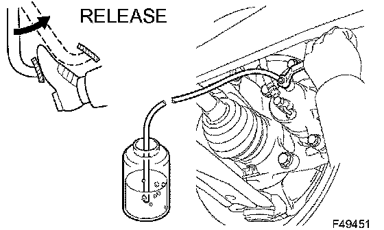 3) When fluid stops coming out, tighten the bleeder plug and release the brake pedal.