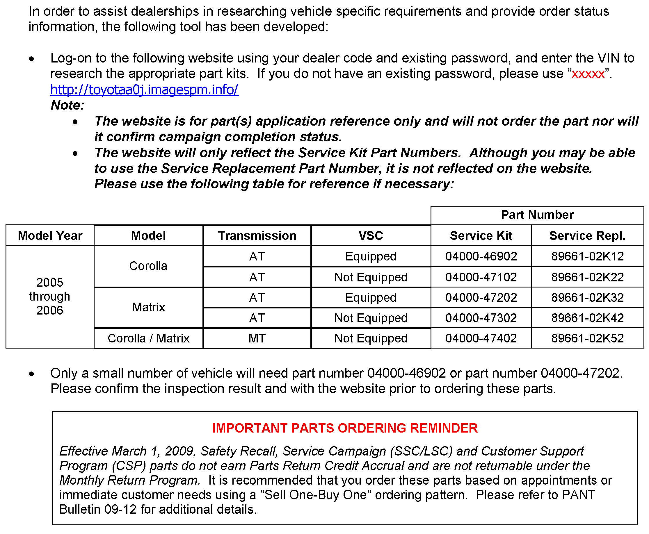 Matrix 2WD L4-1.8L (1ZZ-FE)