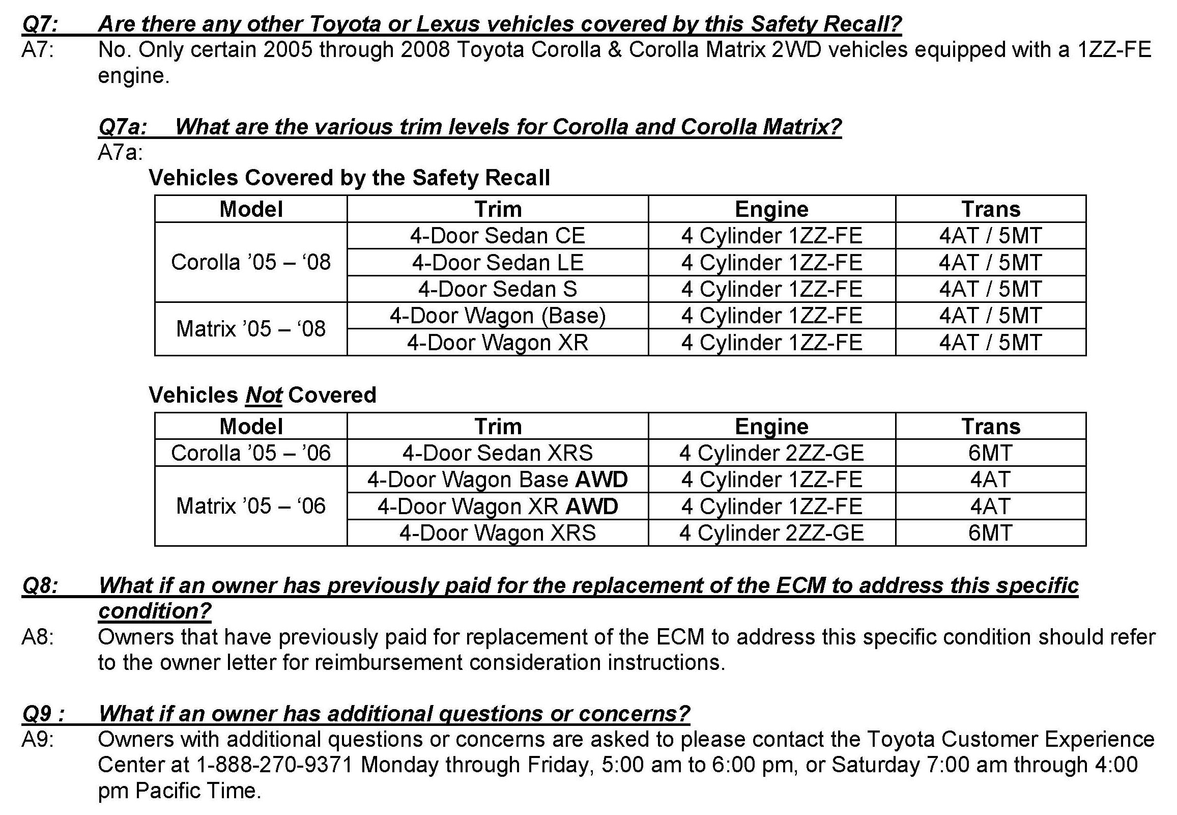Recall - ECM Replacement For Stalling Condition