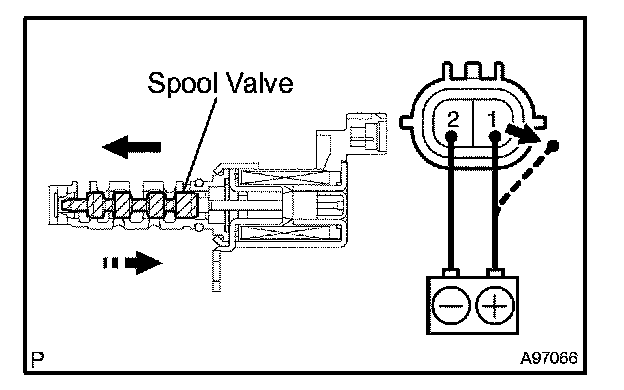 1. Apply battery voltage across the terminals, and check that the spool valve operates.