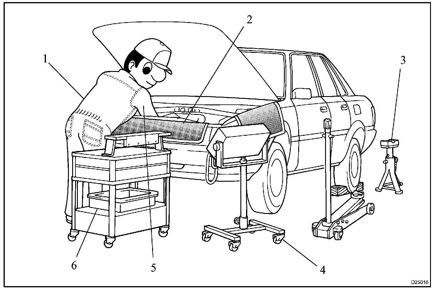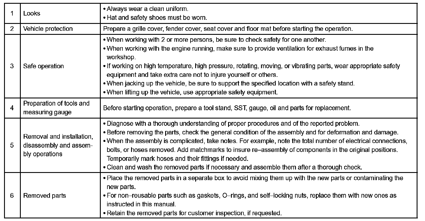 1. Care must be taken when jacking up and supporting the vehicle. Be sure to lift and support the vehicle at the proper locations.