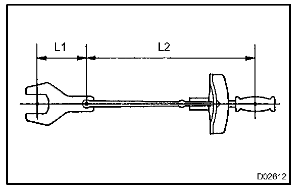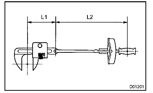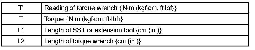 2. Use the formula below to calculate special torque values for situations where SST or an extension tool is combined with the torque wrench.